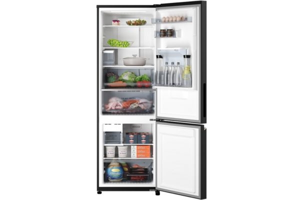 Tủ lạnh nổi bật với thiết kế phẳng tinh tế, cửa tủ kim loại đen sang trọng phù hợp với không gian nội thất hiện đại. Tủ lạnh 2 cửa này có thiết kế ngăn đá phía dưới thay vì ngăn đá trên như các dòng sản phẩm phổ thông cũ. Cách bố trí ngăn mát ở trên sẽ vô cùng tiện lợi bởi ngăn mát là nơi được dùng thường xuyên hơn, người dùng sẽ không cần cúi người khi lấy thực phẩm. Dung tích sử dụng 325 lít, trong đó, ngăn lạnh dung tích 228 lít, ngăn đá 97 lít phù hợp với nhu cầu sử dụng của gia đình 3 – 4 người. Bạn sẽ thoải mái dự trữ thực phẩm cho gia đình trong nhiều ngày mà vẫn đảm bảo độ tươi ngon, an toàn cho sức khỏe.